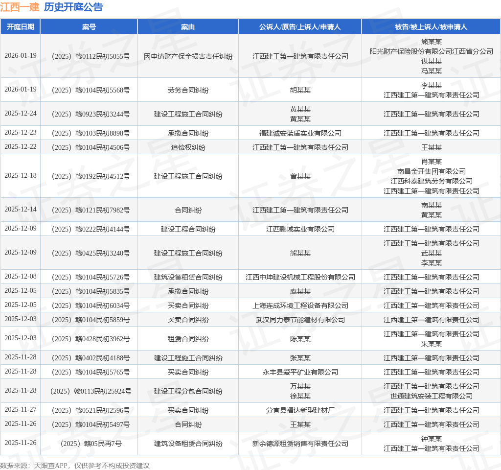 证券之星音讯,依据天眼查APP拂尘,近来发布了一则江西建工榜首修建有限责任公司作为被告/被上诉人的开庭公告,具体内容如下: