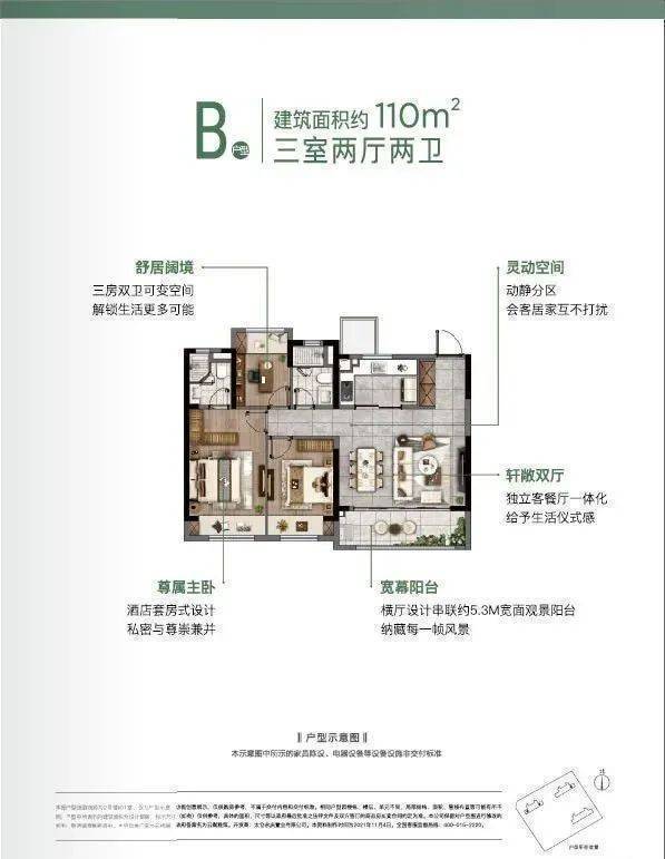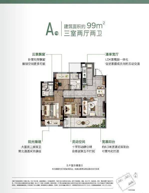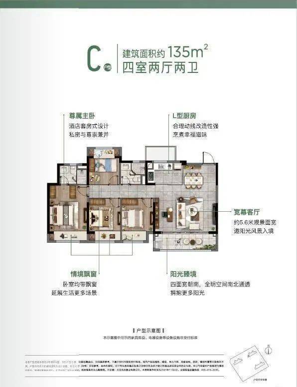 户型:主力为建面约99㎡(三居室)、110㎡(三居室)、135㎡(四居室),均配备双卫及中央空调、新风系统